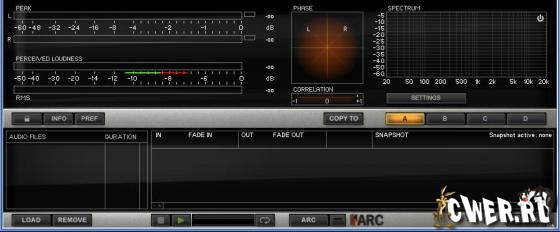 • Новая совершенная встроенная измеряющая секция с Peak, Perceived Loudness, Phase и RMS измерителями, а также анализатор спектра с Peak, RMS и Averaging индикаторами